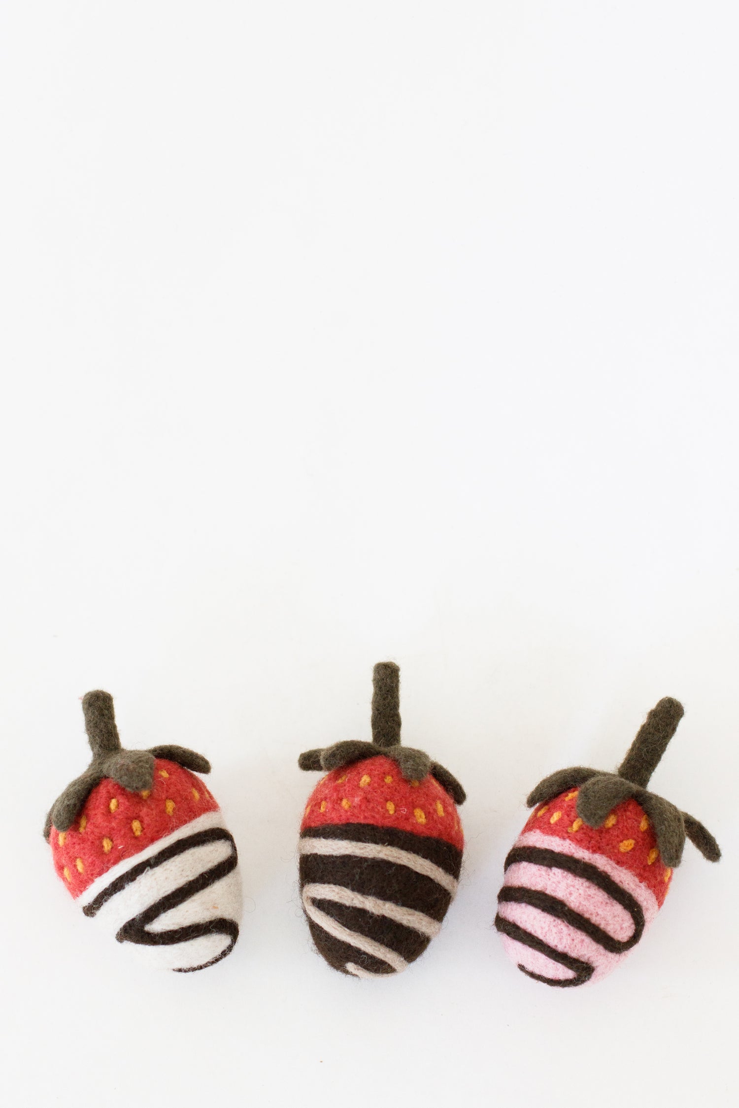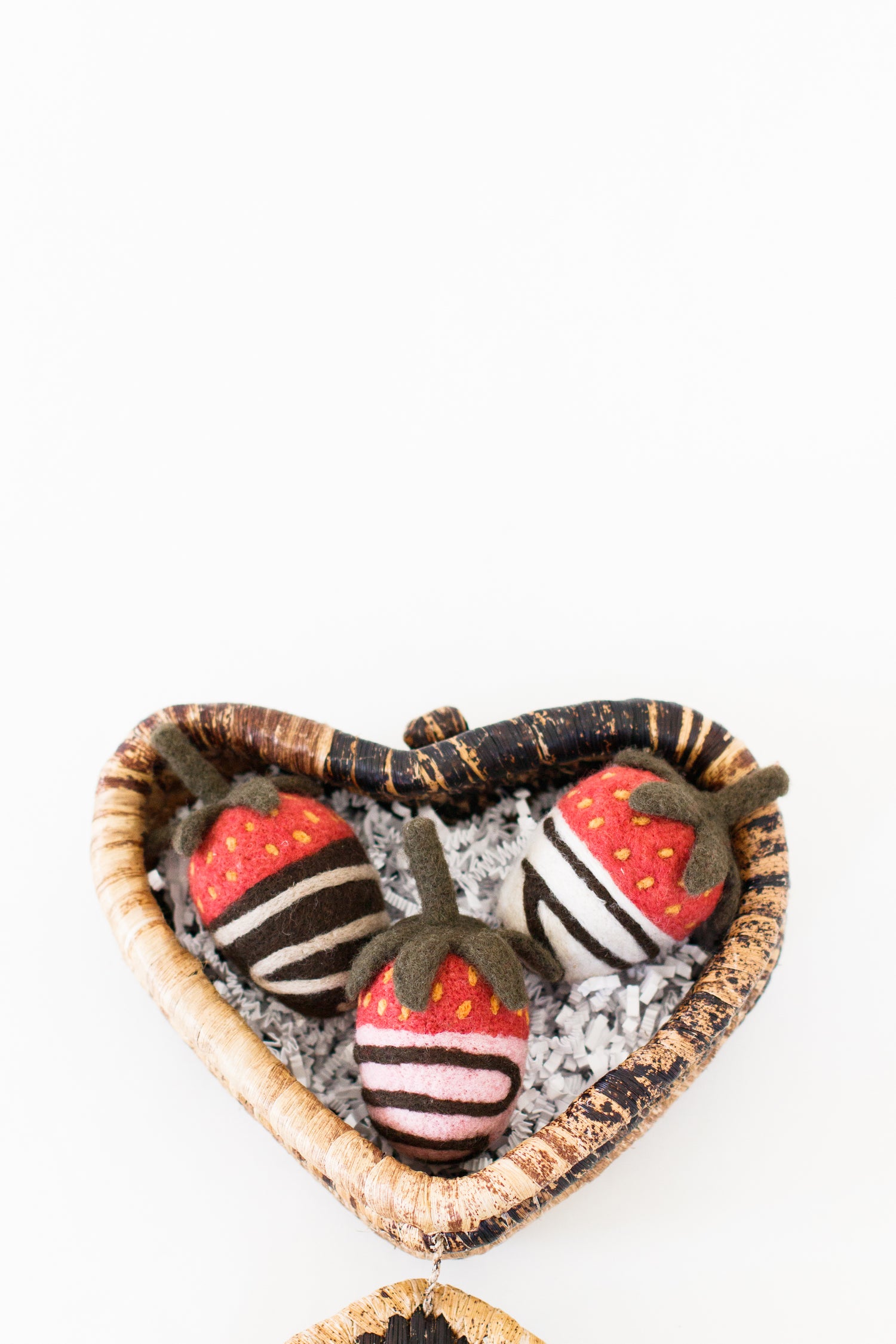 We couldn't be more excited about our Chocolate-Covered Strawberry Trio, new for Valentine's Day, 2021! Give the gift of love with these amazing felted sculptures created by the women of Handspun Hope. We promise they are 100% calorie free and help give love to at-risk women in Rwanda.