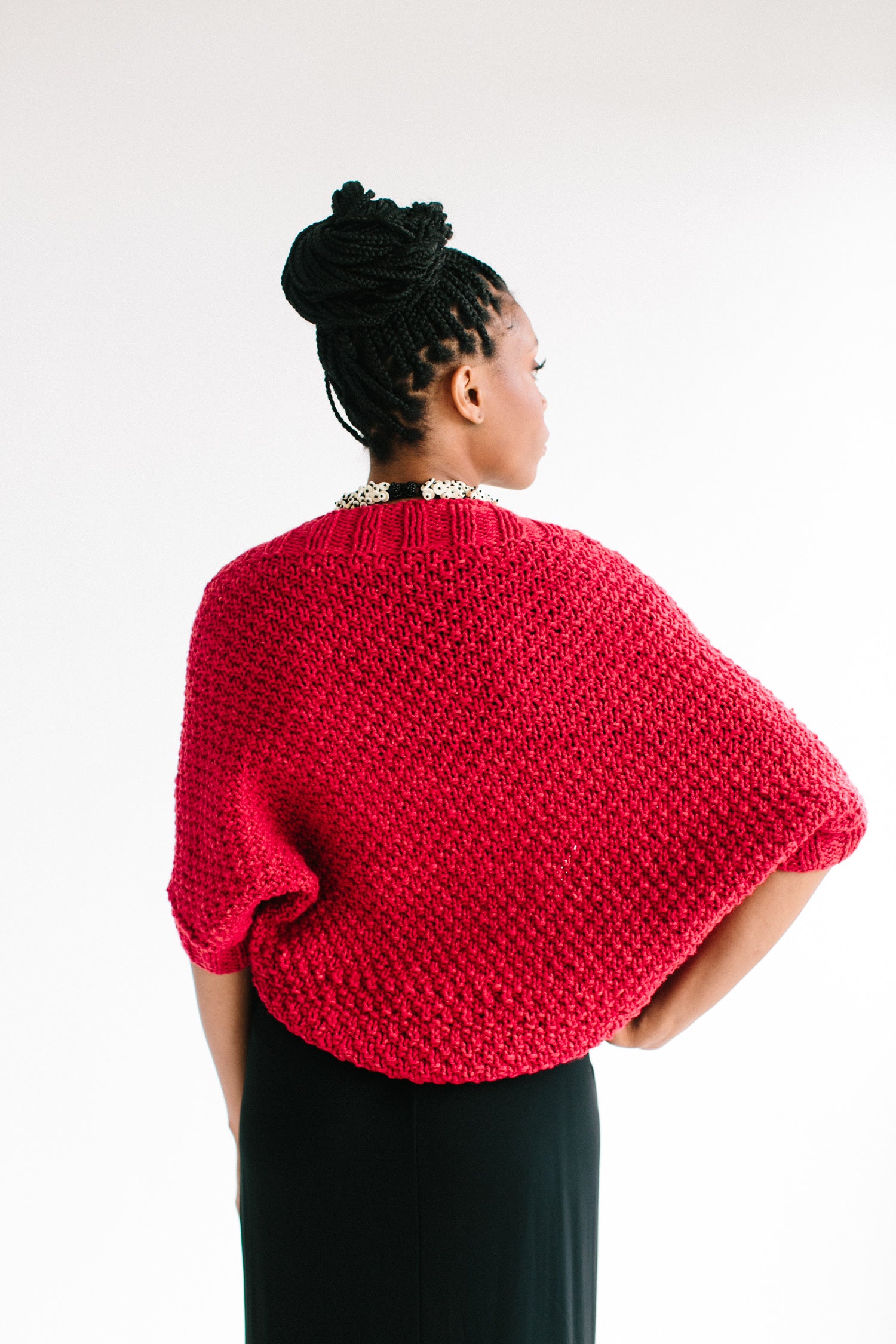 This piece is knit flat and the magic happens in the assembly. The River Nile Shrug features Handspun Hope Worsted and is a great transitional garment to take you in and out of cooler weather. Dress it up or dress it down – the possibilities for styling the River Nile Shrug are endless. Ideal for layering, the River Nile Shrug is a perfect addition to any wardrobe. Available in sizes S/M, L/XL, 1X/2X, 3X/4X.