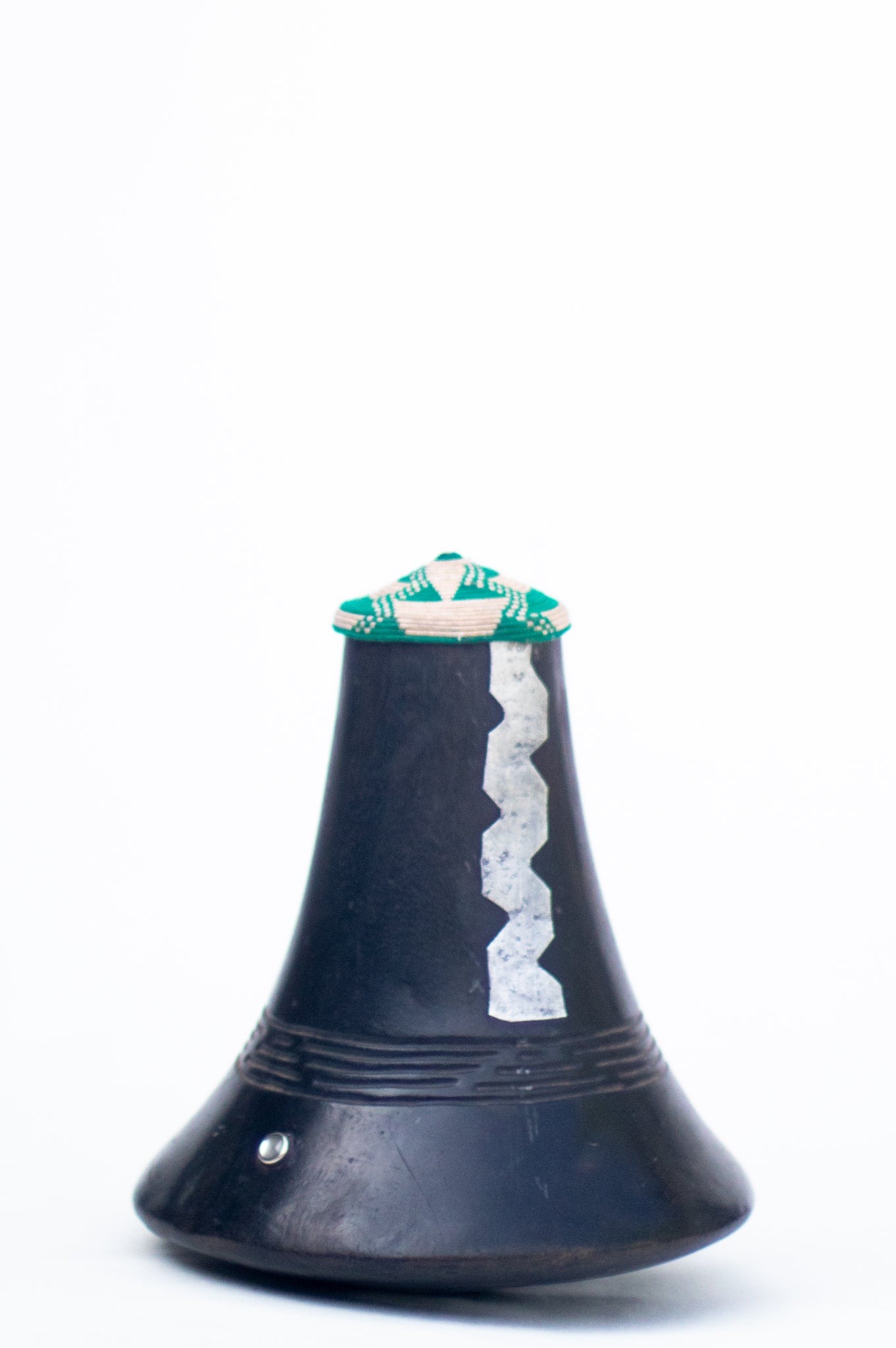 A vintage Hima milk vessel (inkongoro) is a special find. This authentic household relic from Rwanda was hand-carved from jacaranda wood during the early 20th century. When the vessel cracked from everyday wear and tear, patches were fashioned using bits of aluminum from old pans. The patches create rustic beauty, ensuring no two pieces are alike. On the top of the vessel rests an intricately handwoven lid that has withstood the test of time. Each top is unique in color and design, making the Hima vessel a perfect one-of-a-kind piece of art destined to stand out in any modern room. #milkjug #inkongoro #hima #madeinrwanda #africanart #vintageart