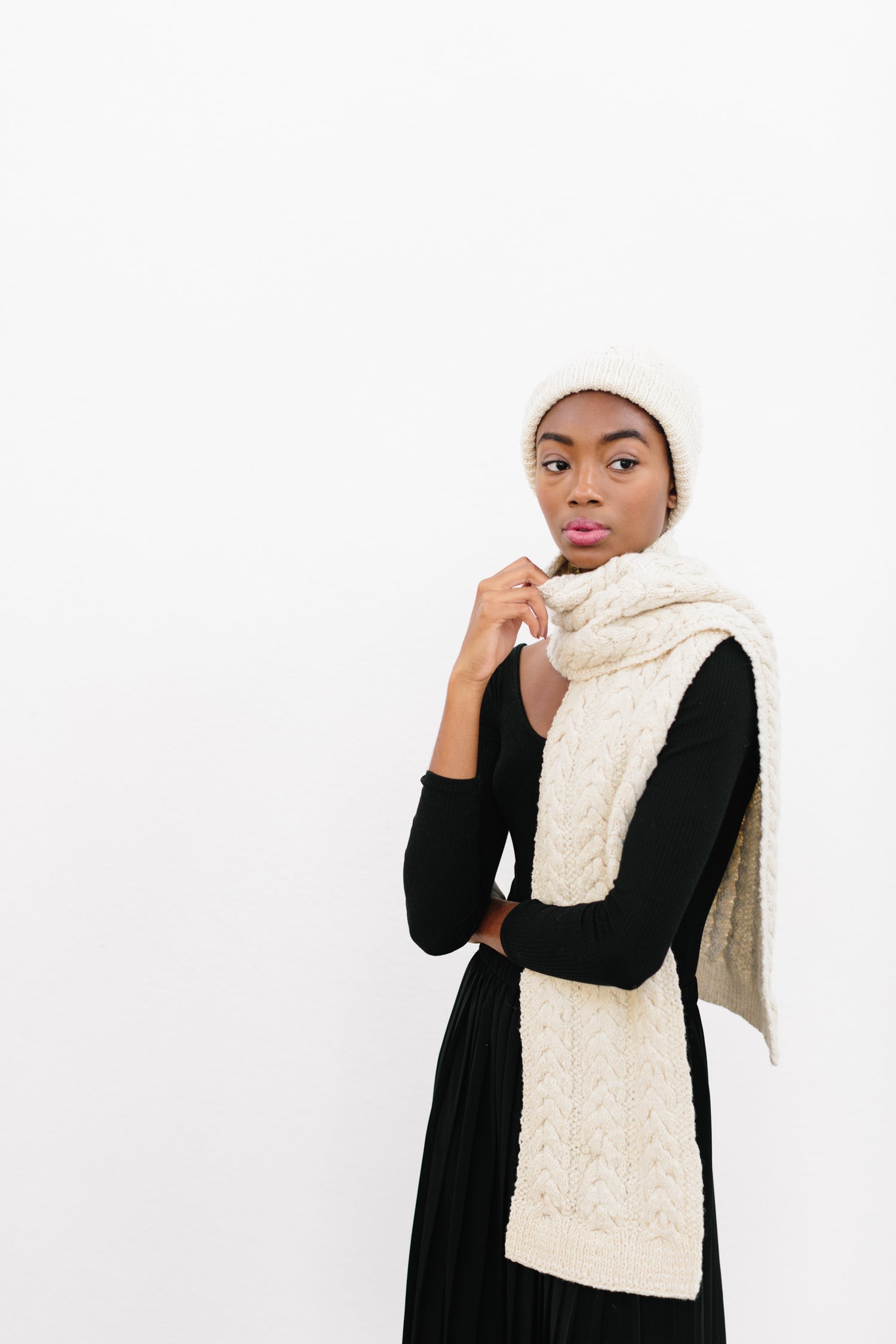Feel the warmth of our Christine Cable Scarf, hand knit from organic merino wool by the ladies of Handspun Hope. Designed with a gorgeous textured cable and ribbed ends that pair effortlessly with the Christine Cable Beanie. We guarantee maximum coziness and a soft comfortable way to stay warm this fall and winter. Available in any shade from our natural merino palette.