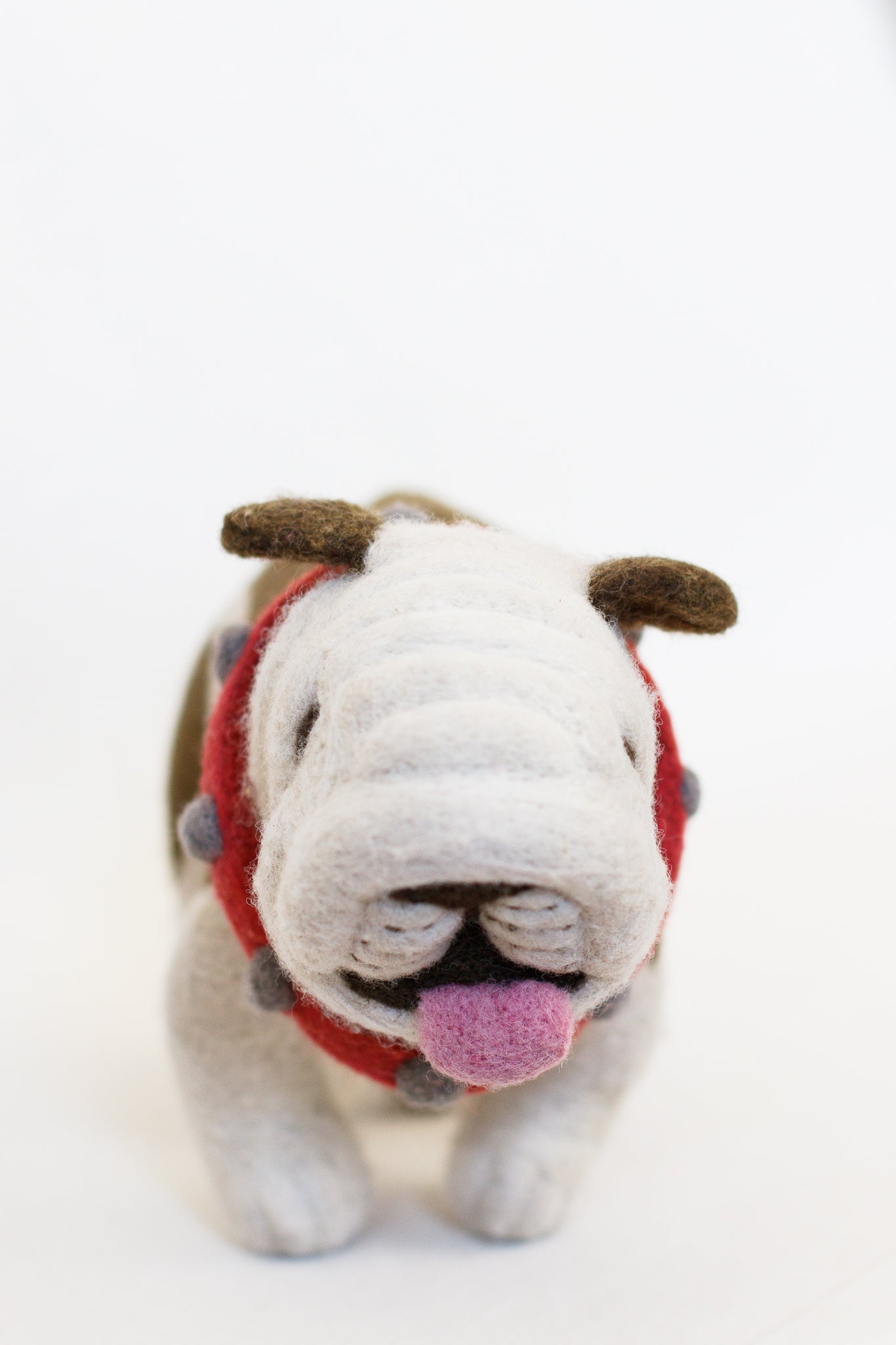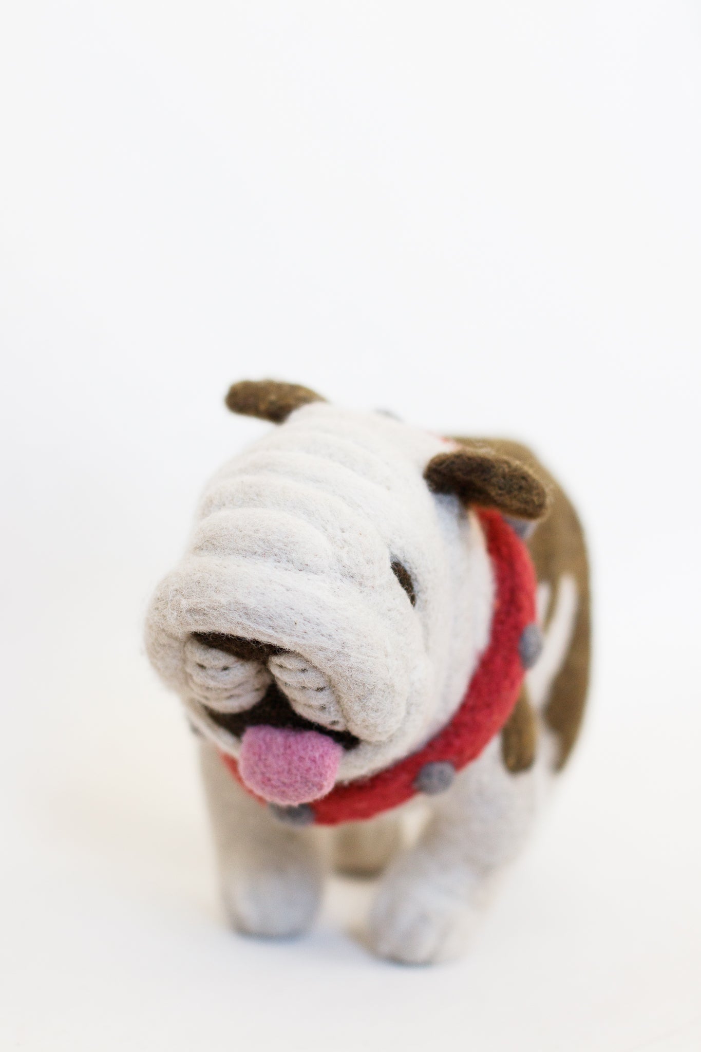 A new staff favorite, Peaches Bulldog has made a huge entrance by joining our family of needle-felted organic sculptures. Whether or not you are a Georgia fan, you are sure to fall in love with this darling bulldog!