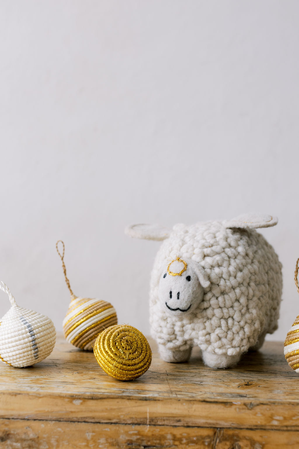 The Lily Lamb Angel Tree Topper is lovingly handcrafted from 100% organic, undyed natural merino wool. Adorned with delicate angel wings and a golden halo, she brings a gentle, peaceful charm to the top of your Christmas tree. Because each piece is individually made, variations in proportions and facial features make every angel lamb truly unique.