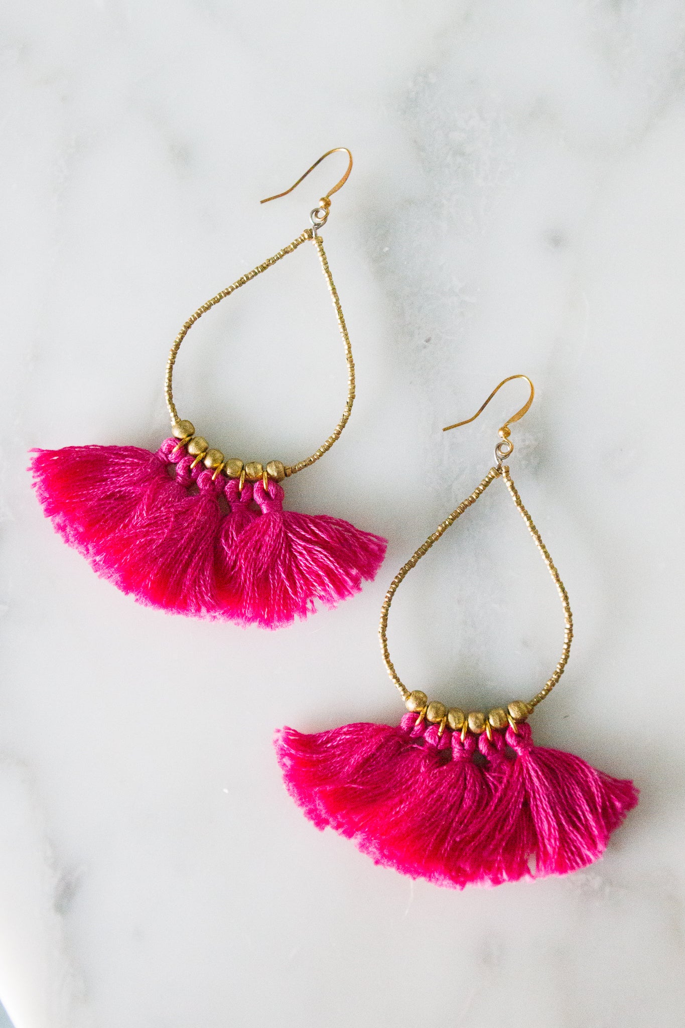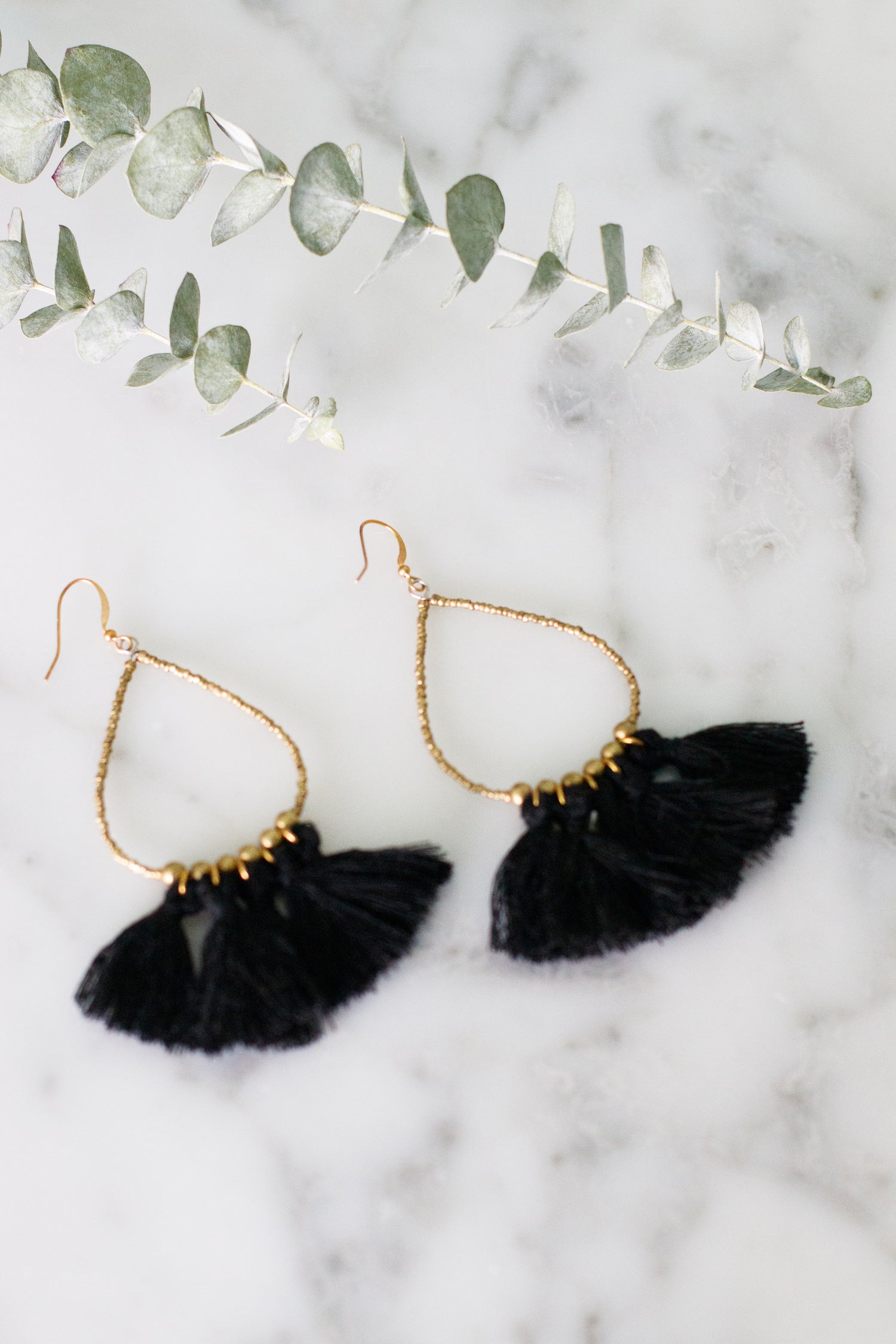 These teardrop earrings with tassel fringe earrings are hand crafted by a cooperative of talented artisans outside Addis Ababa, Ethiopia. This cooperative employs and supports women living with HIV/AIDS. The organization partners with farmers and local landowners who allow the women to sift through freshly tilled farmland in order to collect and upcycle spent artillery shells left from various civil wars. The shells are separated and sanitized, then melted and crafted into delicate beads used in creating a stunning collection of unique jewelry.