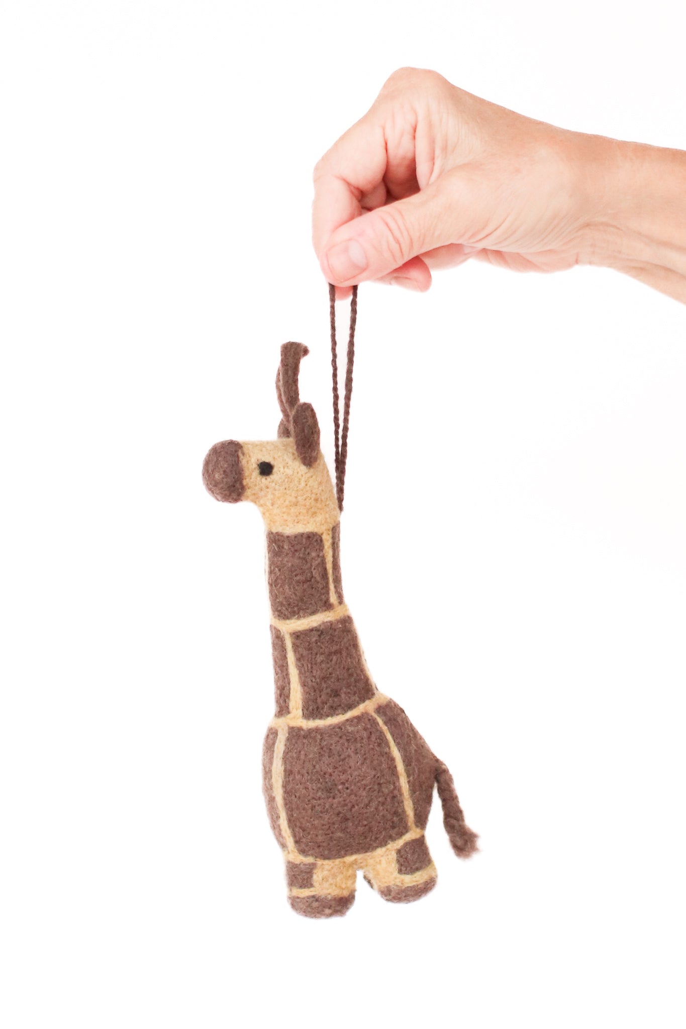 Ollie Giraffe Ornament is 100% organic, naturally dyed, wool. Because each piece is individually handcrafted, there will be variances in proportions and facial features between each sculpture.