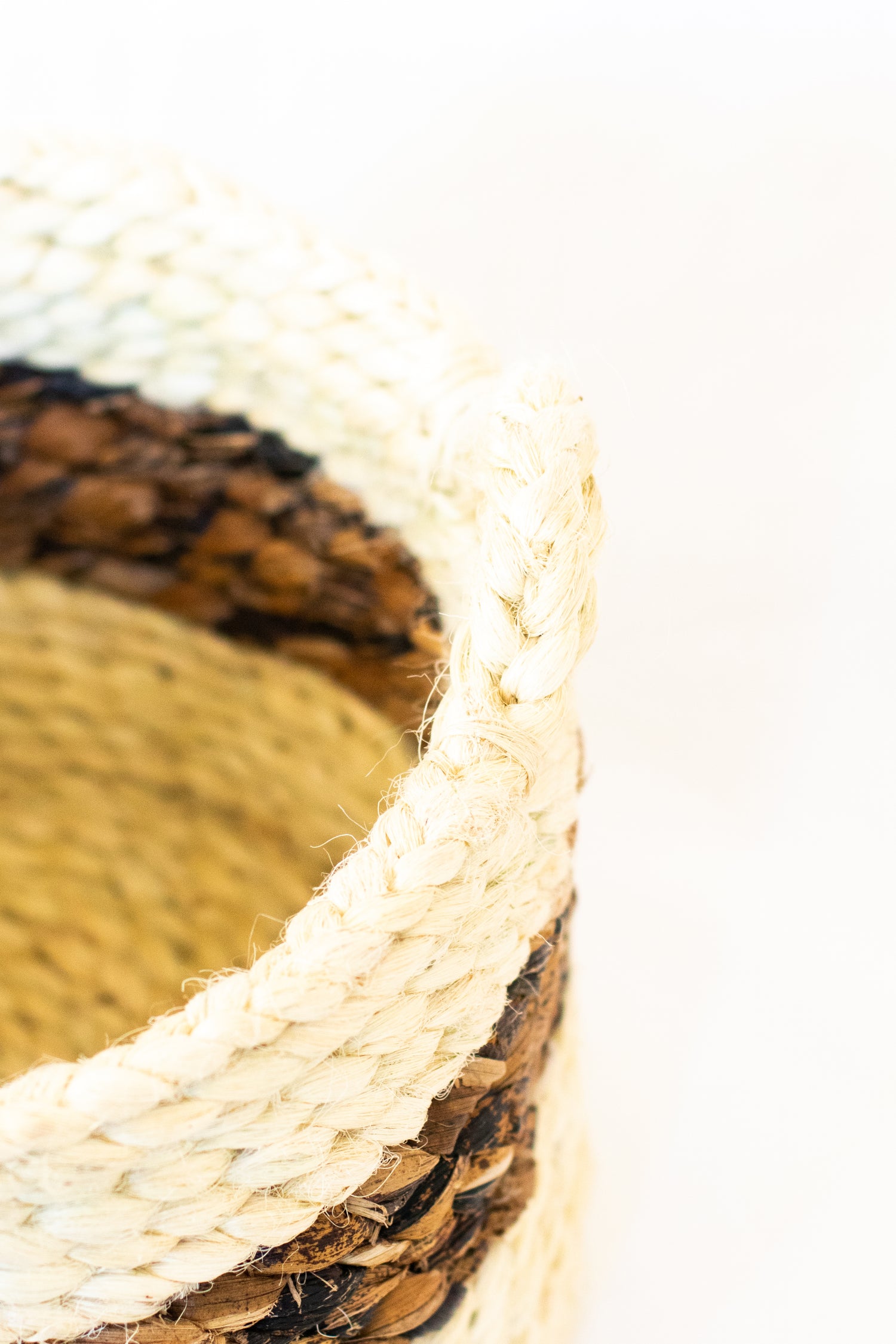 The Patience Basket is a lovely and useful basket handwoven from native banana and imigwegwe fibers by artisans in Gisenyi, Rwanda. It's perfect for your plants or as a decorative accent piece that can hold yarn, bath towels or kids toys.