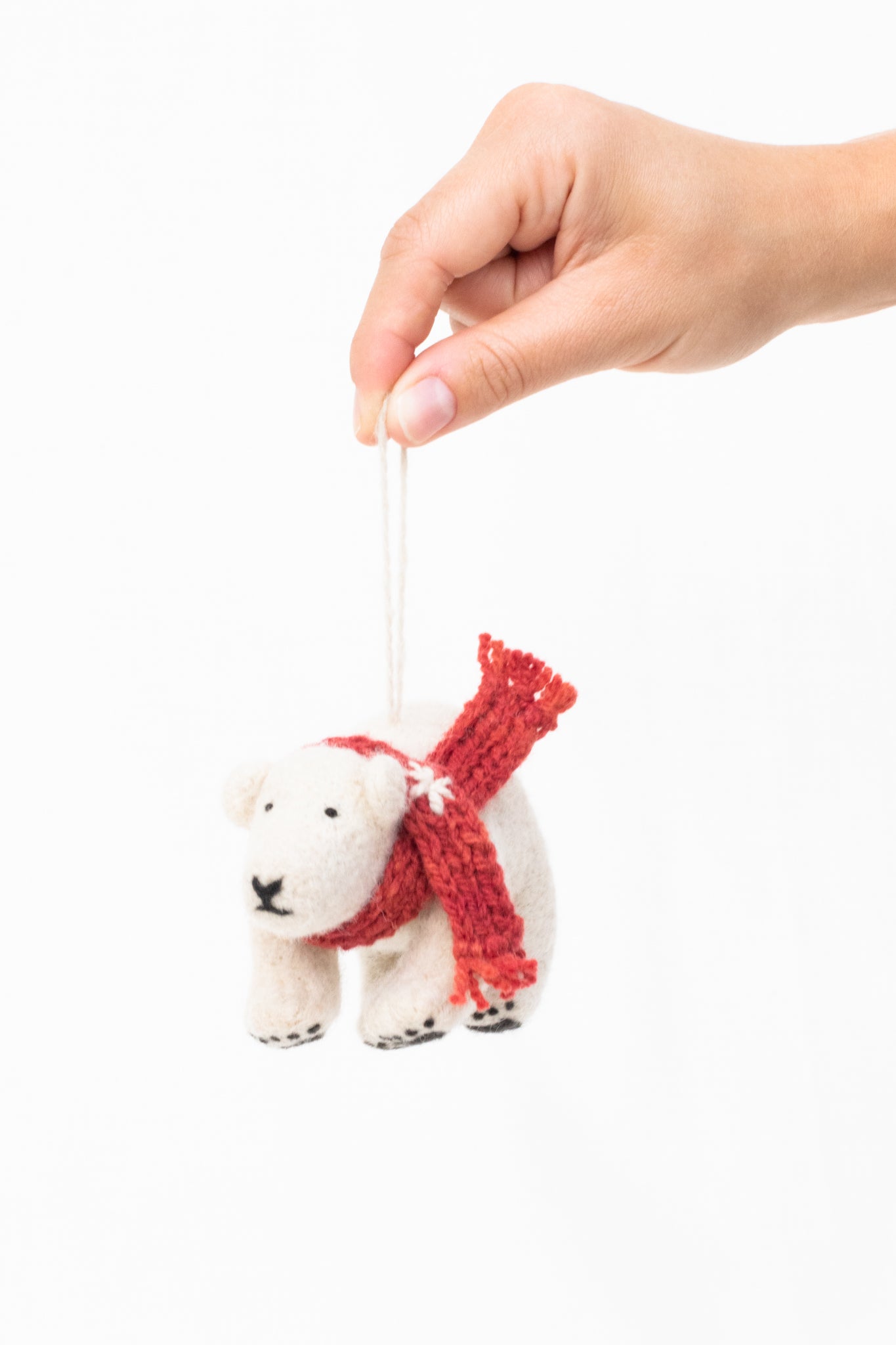 Our Isimbi Polar Bear Ornament is new this season and is ready to trim your tree! Needle-felted by hand by women working for Handspun Hope in northern Rwanda.