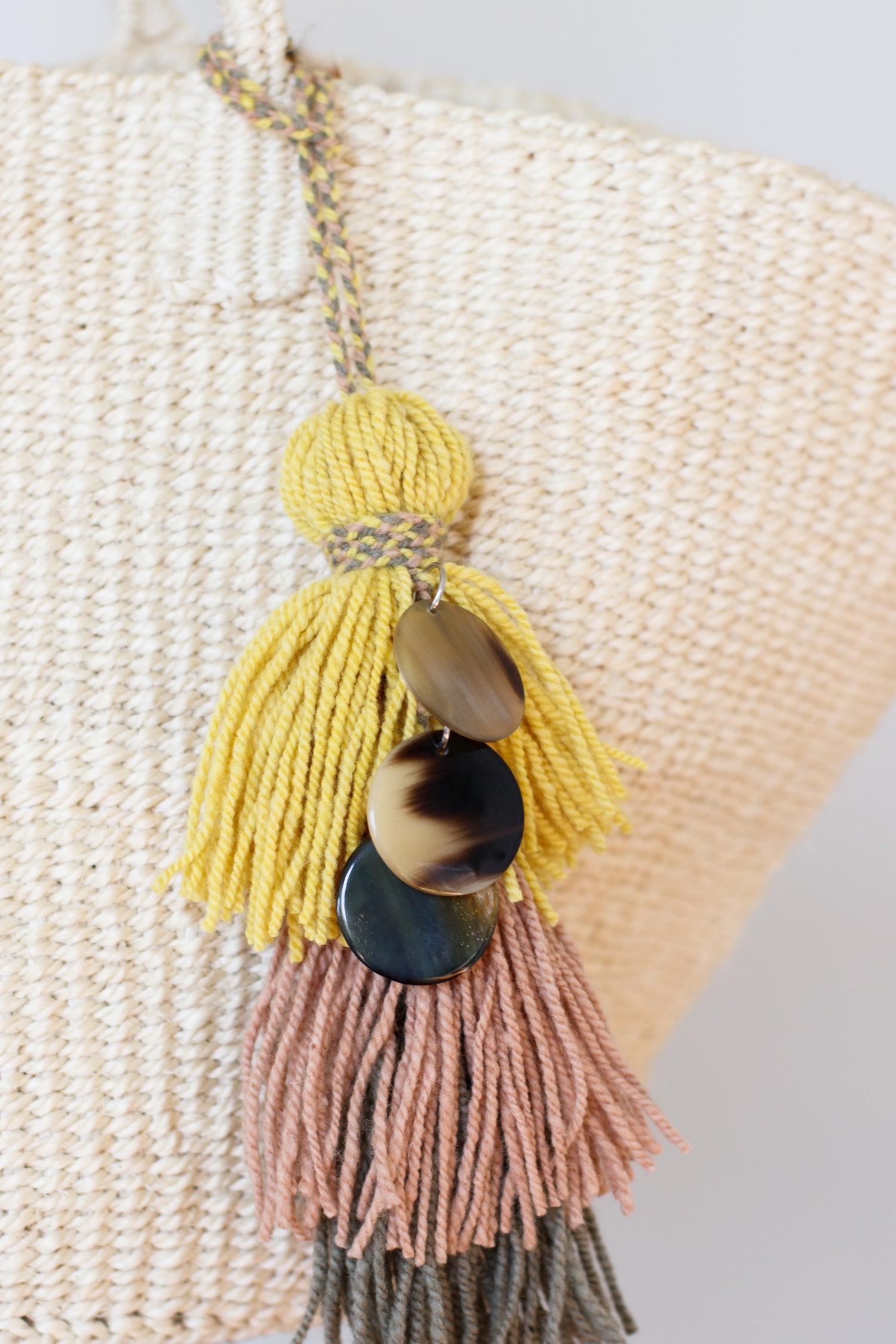 Our Sisal Market Bag is created by women in rural Kenya who first extract the natural fiber from the agave sisalana or sisal plant and then weave these fabulous bags. These bags are completed with an embellishment from Handspun Hope created from our naturally dyed yarn and a polished charm made of cow horn.