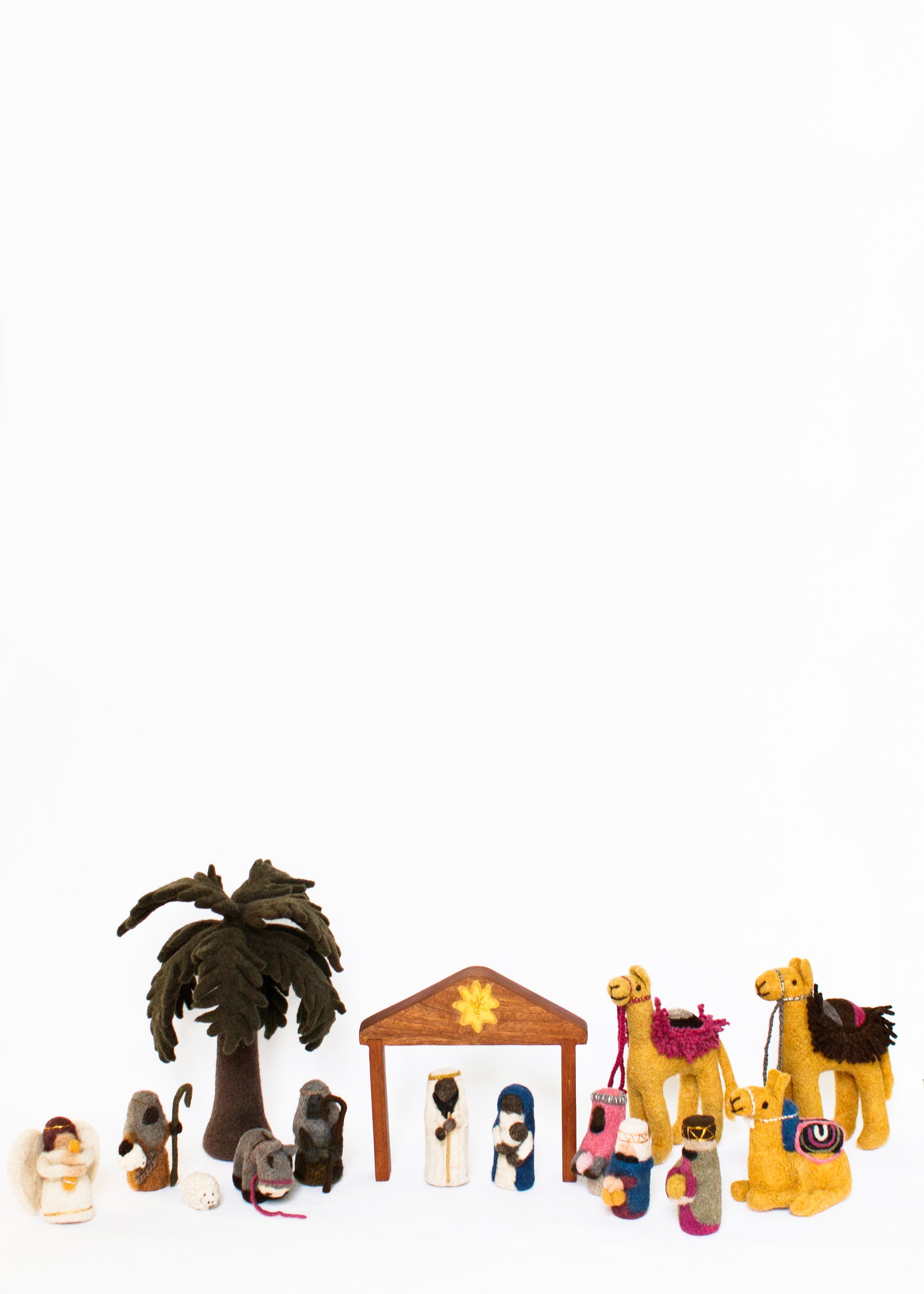 The Hope Nativity, Complete Edition is the complete compilation of our collectible nativity. Handcrafted from 100% organic wool from our own flock of merino sheep and created by the sweet hands of some of the ladies working at Handspun Hope.