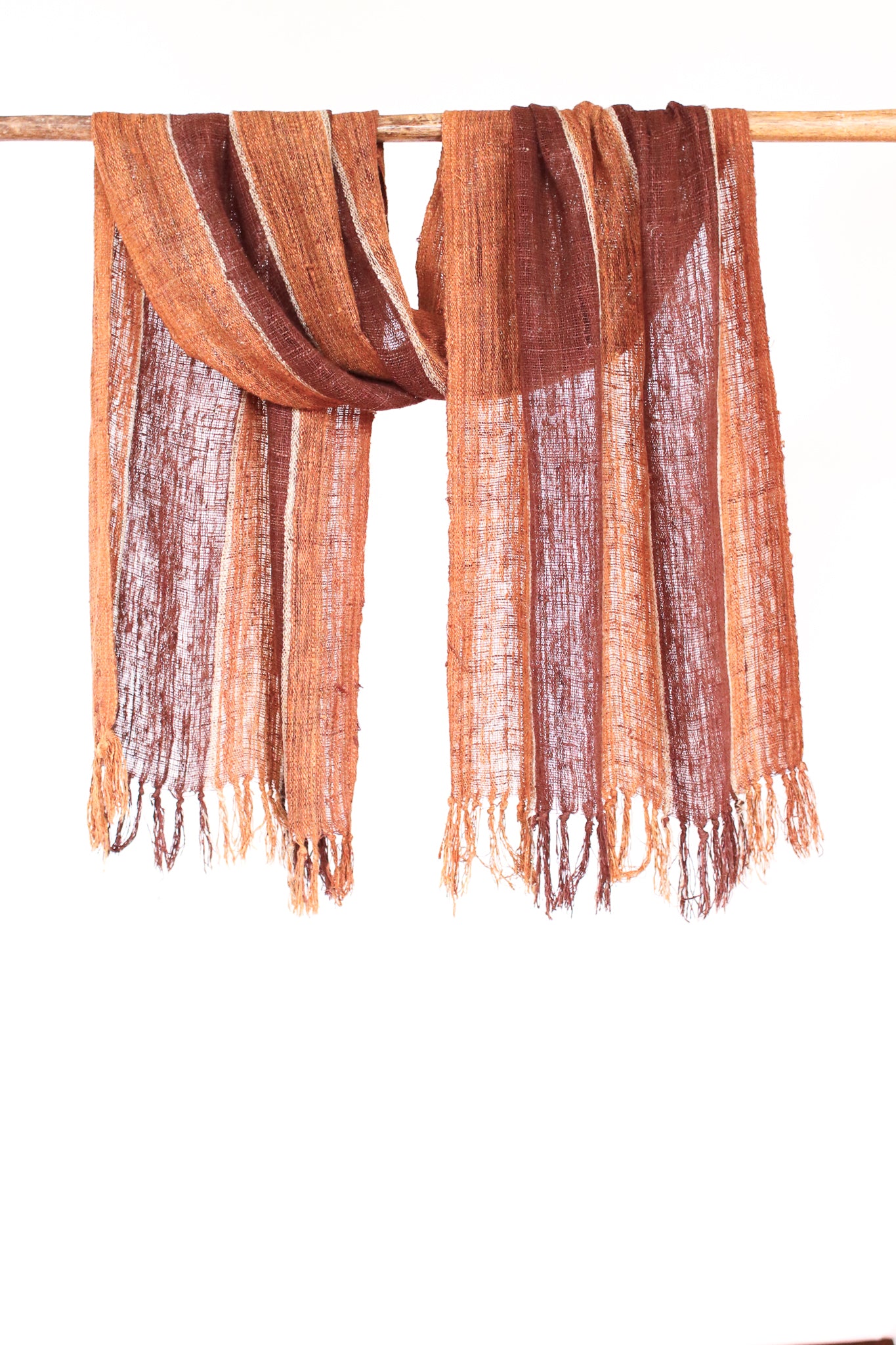 The women carefully collect wild silk from the cocoons that are gathered in the local forest. The fine fibers are carefully cleaned, dried and spun into a fine thread with drop spindles before dying the threads in dye-baths created from native plants and organic matter. In the final stage, the fibers are carefully woven together using handlooms. What results are magnificent scarves of varying sizes and shades.
