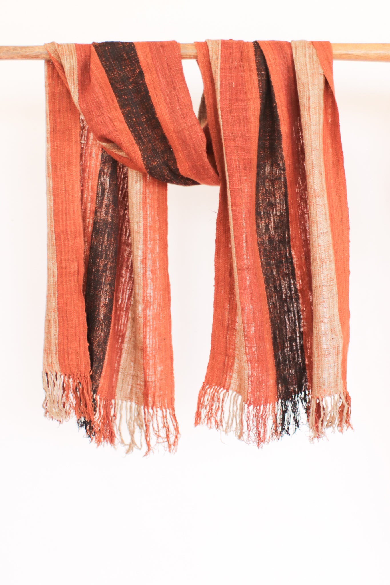 The women carefully collect wild silk from the cocoons that are gathered in the local forest. The fine fibers are carefully cleaned, dried and spun into a fine thread with drop spindles before dying the threads in dye-baths created from native plants and organic matter. In the final stage, the fibers are carefully woven together using handlooms. What results are magnificent scarves of varying sizes and shades.
